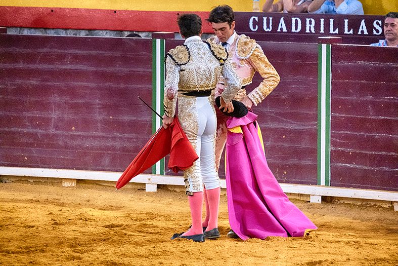 Chapeau a Adrián de Torres. A él correspondieron los mejores lances de recibo a la verónica, y los dos únicos quites de la tarde: a su primero por “tafalleras” y al segundo bis por “Gaoneras”. Su primer toro se rompió el pitón derecho al derrotar en el burladero cuando Adrián se disponía a empezar su faena. A pesar de haberse lesionado durante la lidia, hay que agradecer la actitud de la presidencia del festejo al devolver al toro a los corrales para que saliese el sobreero que, a la postre, permitió el lucimiento del torero. Brindó a un miembro de su cuadrilla y dió comienzo a su faena por estatuarios sin moverse del sitio, cimentó la faena sobre la mano izquierda. Hay que destacar como le anduvo al toro dándole sus tiempos y demostrando mucha torería. Fue premiado con dos orejas. Y el toro con la vuelta al ruedo El quinto de la tarde fue el peor de la corrido, un toro muy parado al que era imposible hacerle faena.