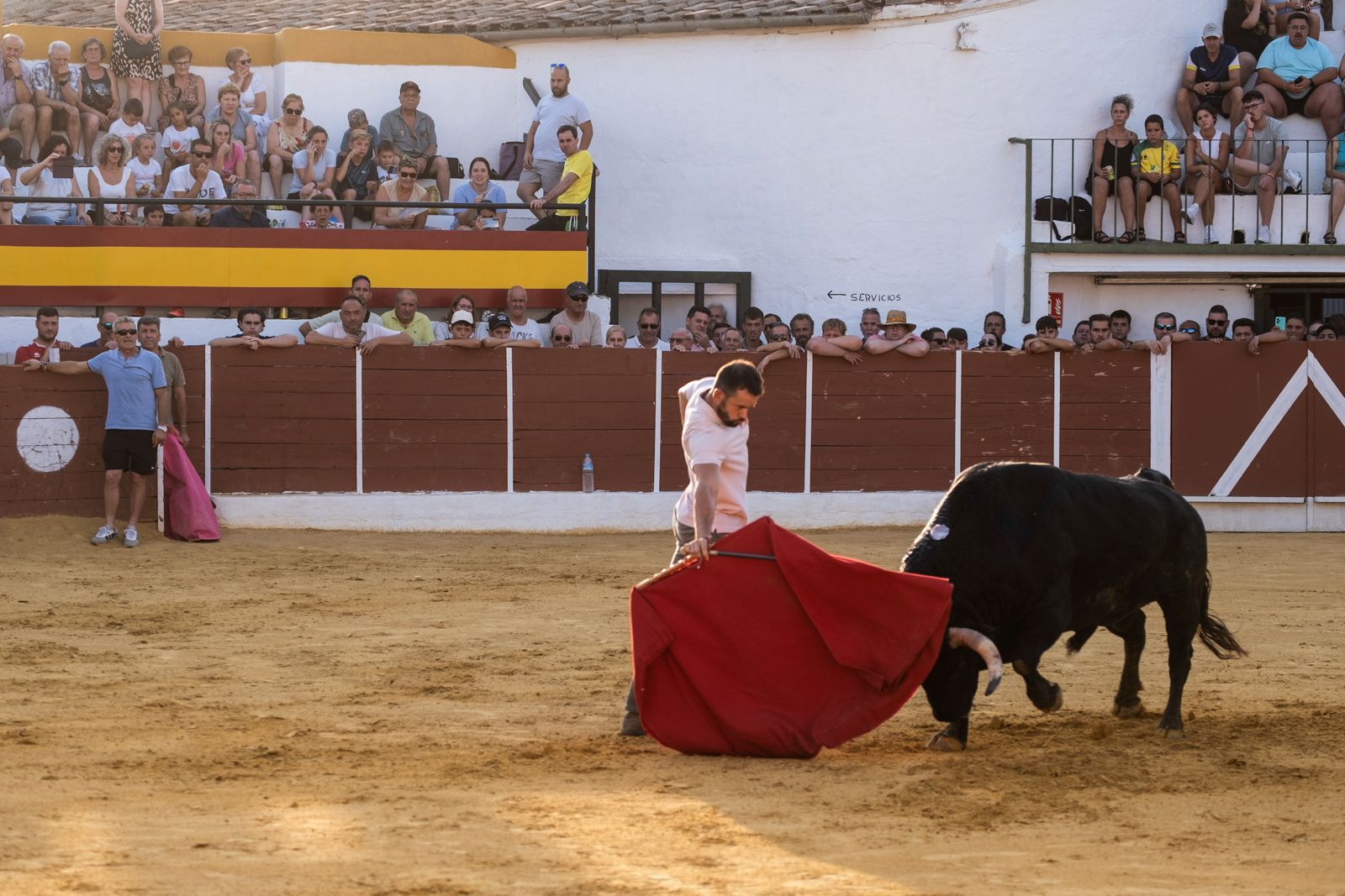 Era dudosa su conducta por la tarde por lo que había acontecido y por el estrés al que hemos aludido y así fue, se emplazó en el centro del ruedo y solo acudió a los engaños que le ofrecieron algunos aficionados. Se resistió a ser encerrado en chiqueros y hubo que desalojar el ruedo y el callejón para poder hacerlo.