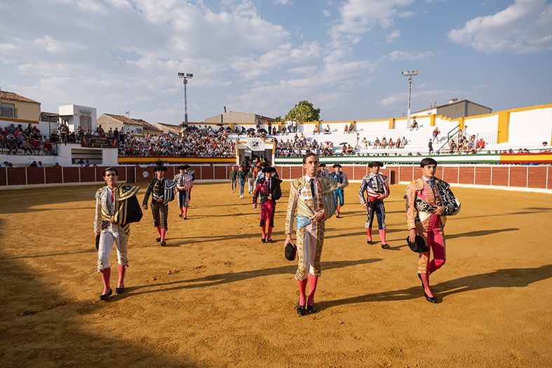Cuarta y última novillada en Castellar con motivo de sus fiestas patronales. Tres cuartos de entrada para presenciar el festejo que con toros de Martín Carrasco habrían de lidiar Tomás Jiménez (Grosella y oro) de la Escuela taurina de Baeza, Manuel Luque “El Exquisito” (Blanco y plata) y Blas Márquez (Rosa pálido y oro) de la Escuela taurina de Linares.